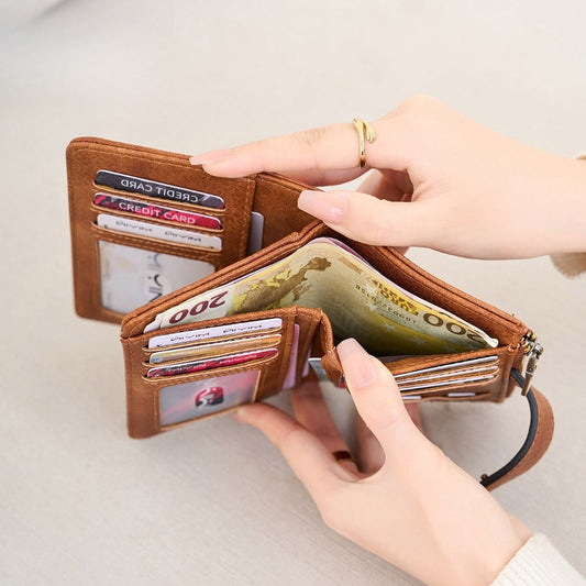 Ladies Leather Bag-RFID Anti-theft Brush Zipper Card Bag